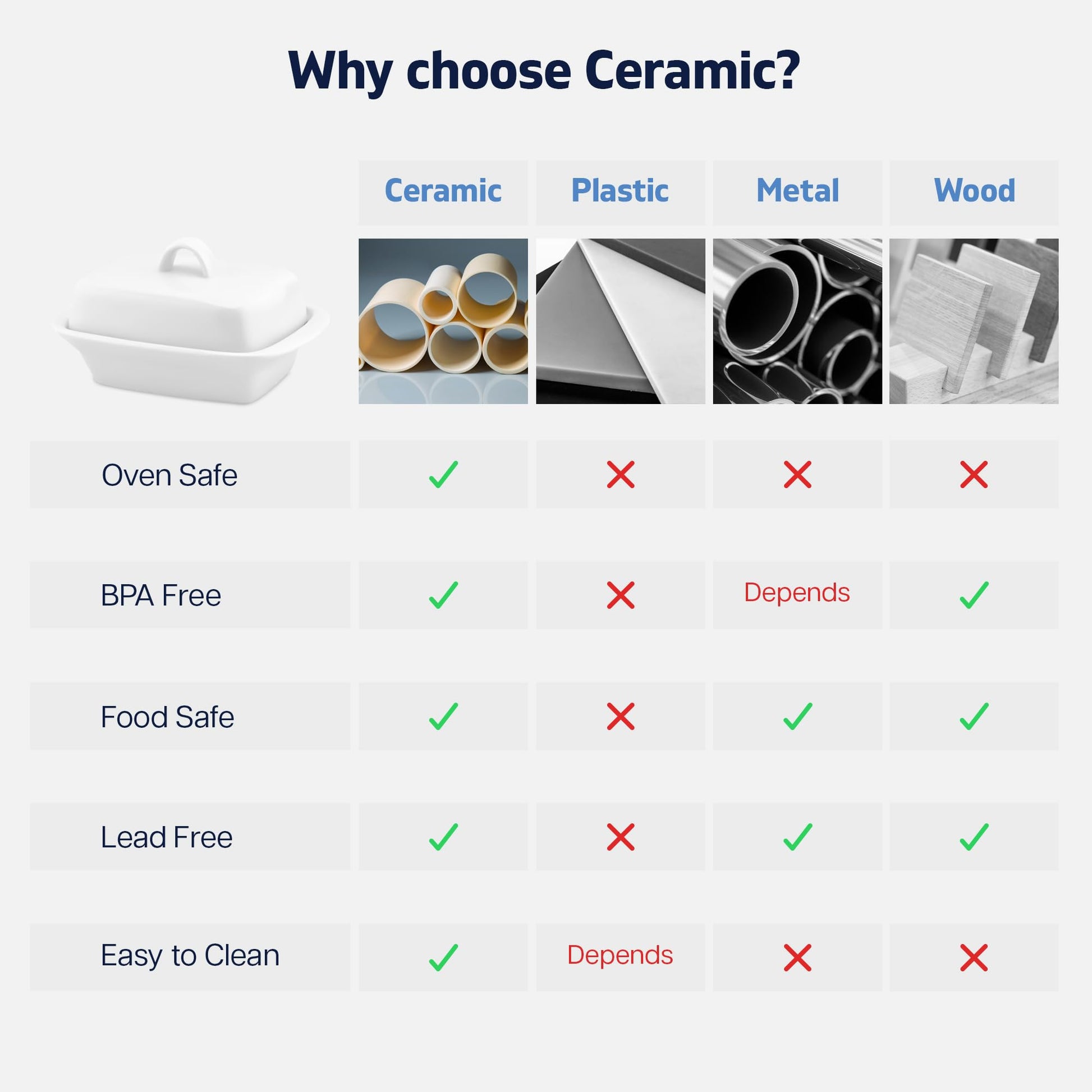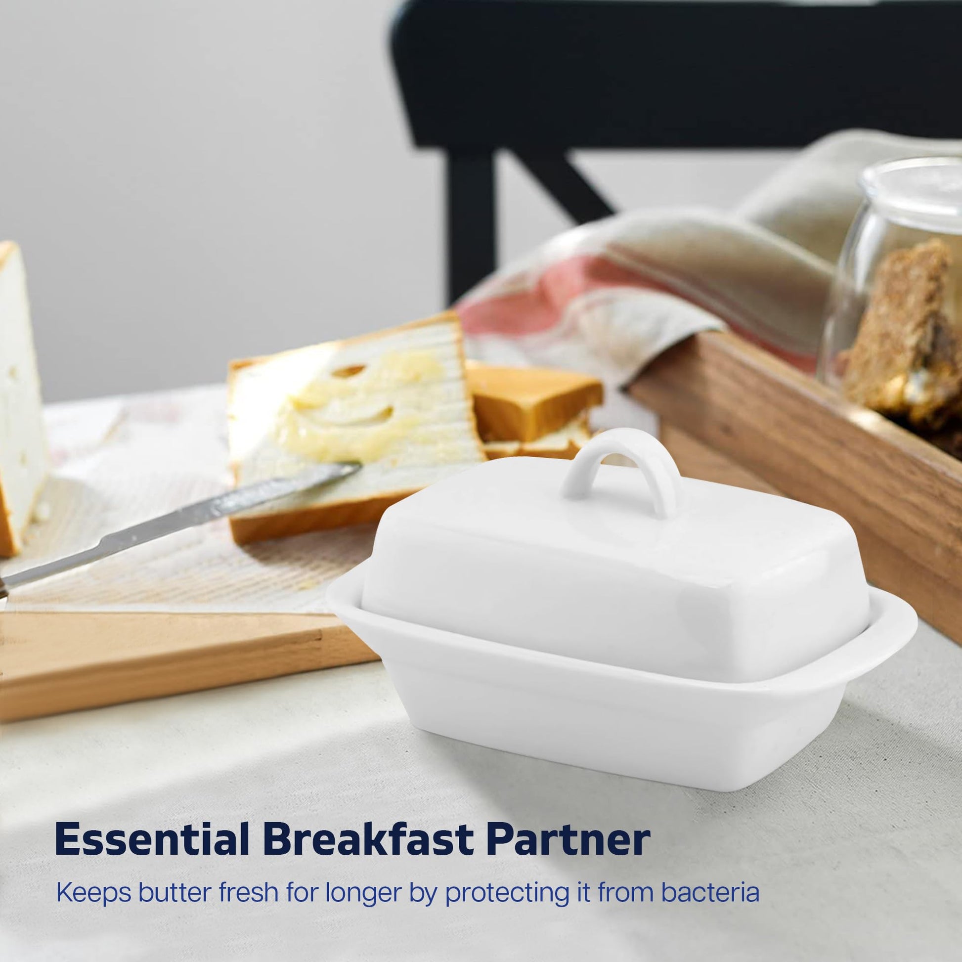 - Perfectly Sized: Our square butter storage dish measures 3H x 5W and provides enough space to hold one stick of butter; this ceramic butter container is perfect for square-sized European butter