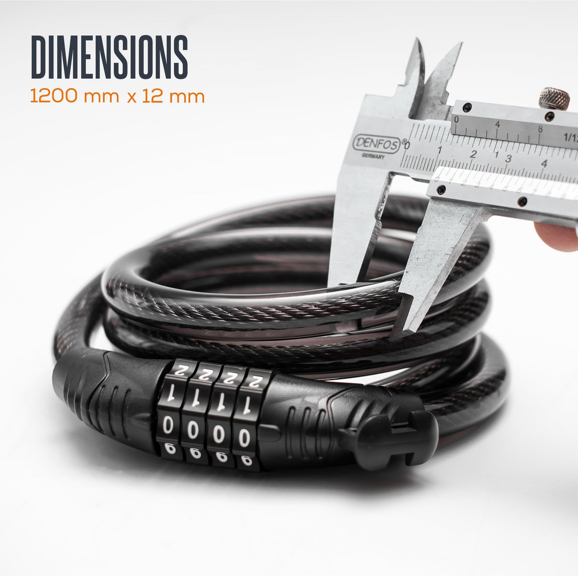- Durable Build: The 4-digit high security combination lock is 1.2 meters (4 feet) long with a 12mm cable diameter and features a steel cable with Polyvinyl Chloride (PVC) cover for protection & to help prevent corrosion plus a Polypropylene (PP) lock head, providing enhanced bicycle and bike protection.