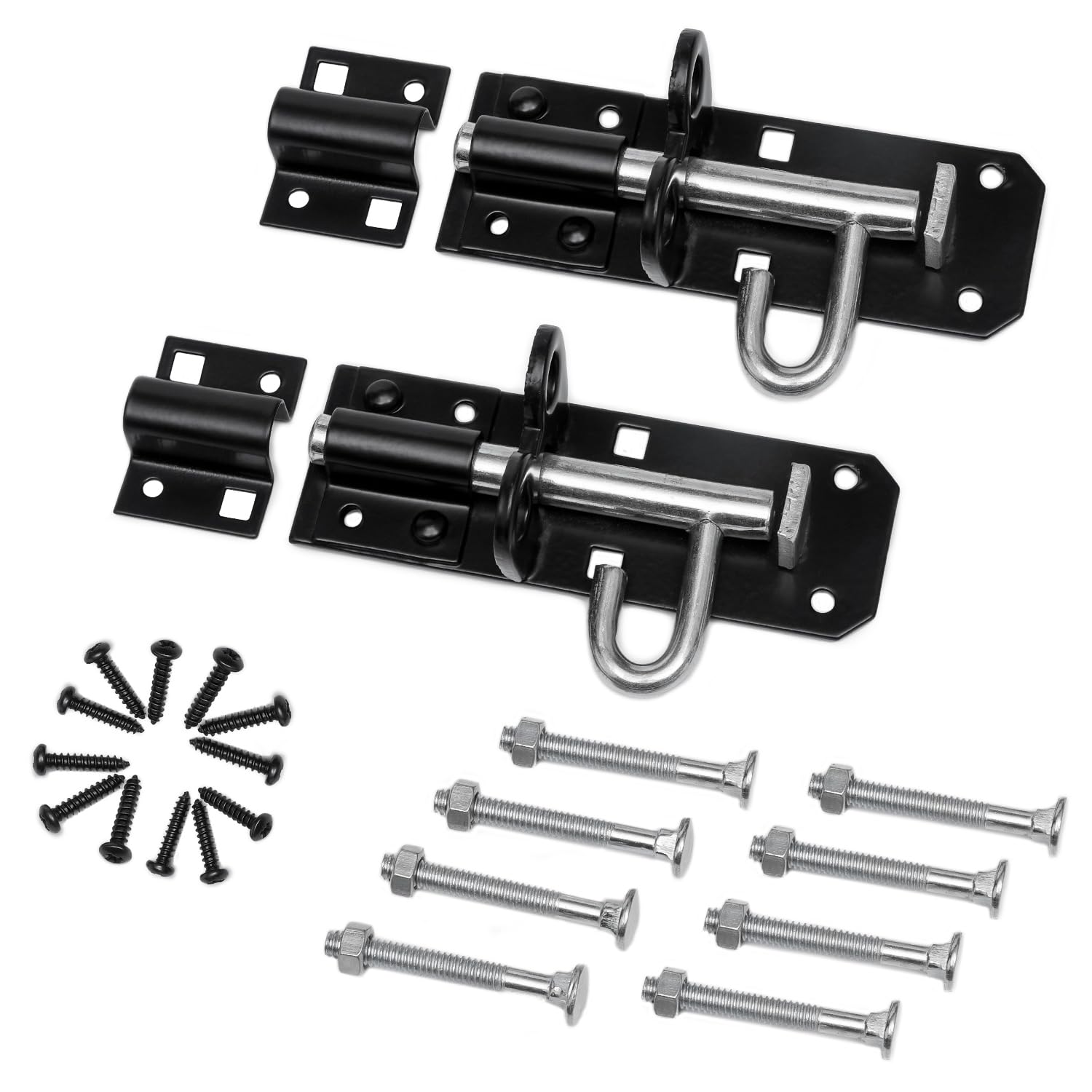 - COMPLETE KIT FOR EASY INSTALLATION: Looking for quick easy gate lock bolt installation? Our sliding bolt lock is designed for convenience; Included with these door lock bolts are all the essential screws, nuts, and bolts, enabling easy installation even for non-professionals.