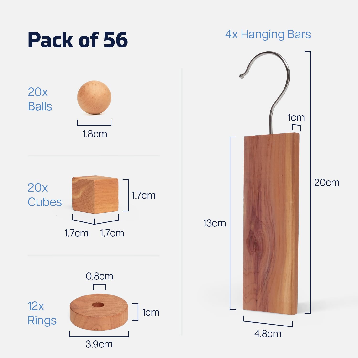 Cedarwood Moth Repellent for Wardrobes, 56 Pcs 100% Natural