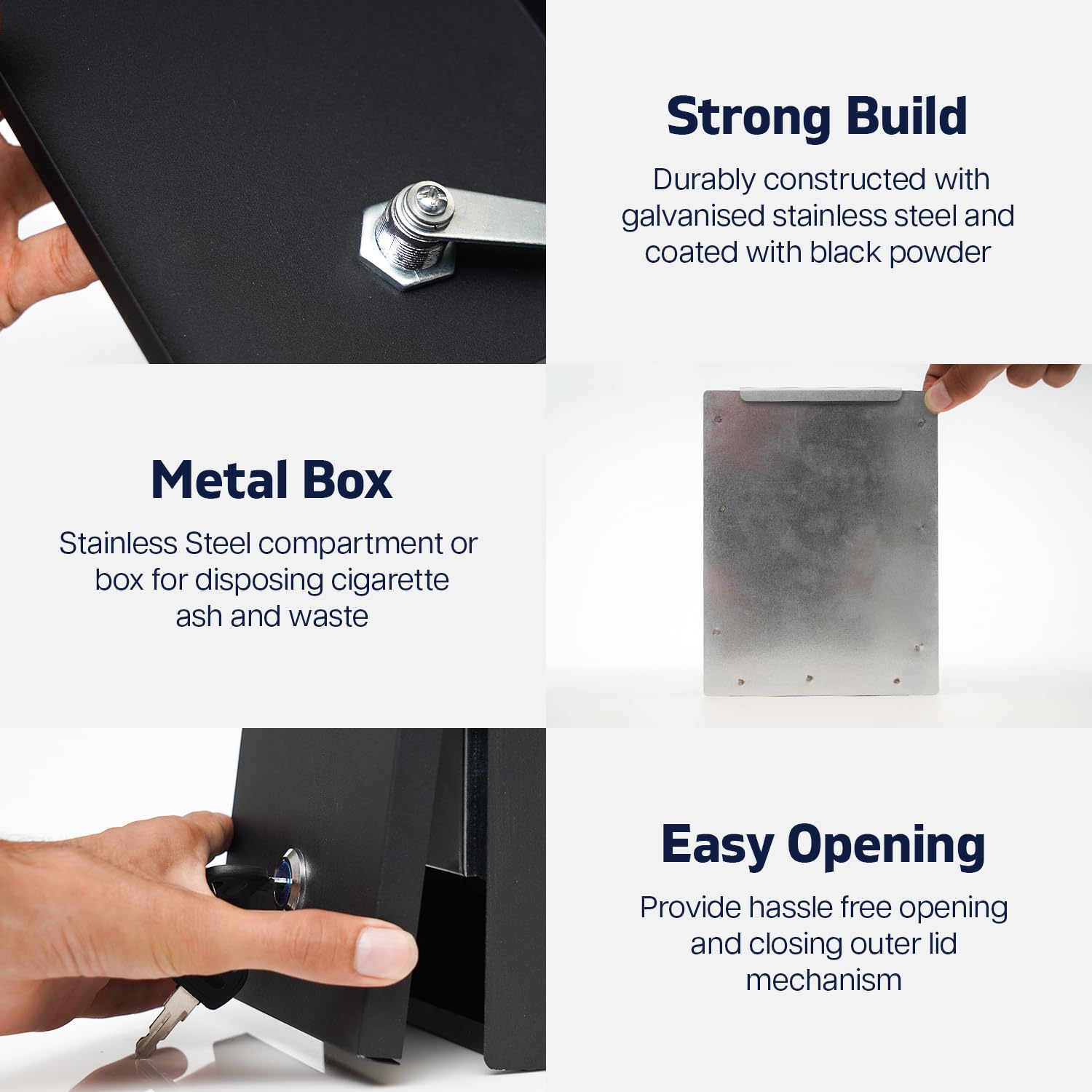 - Premium construction: Our well-engineered outside ashtray wall mounted black bin is powder-coated & the inner metal box is made of galvanised steel, making it weather and fire-resistant; It can easily bear daily wear and tear and withstand harsh environmental conditions
