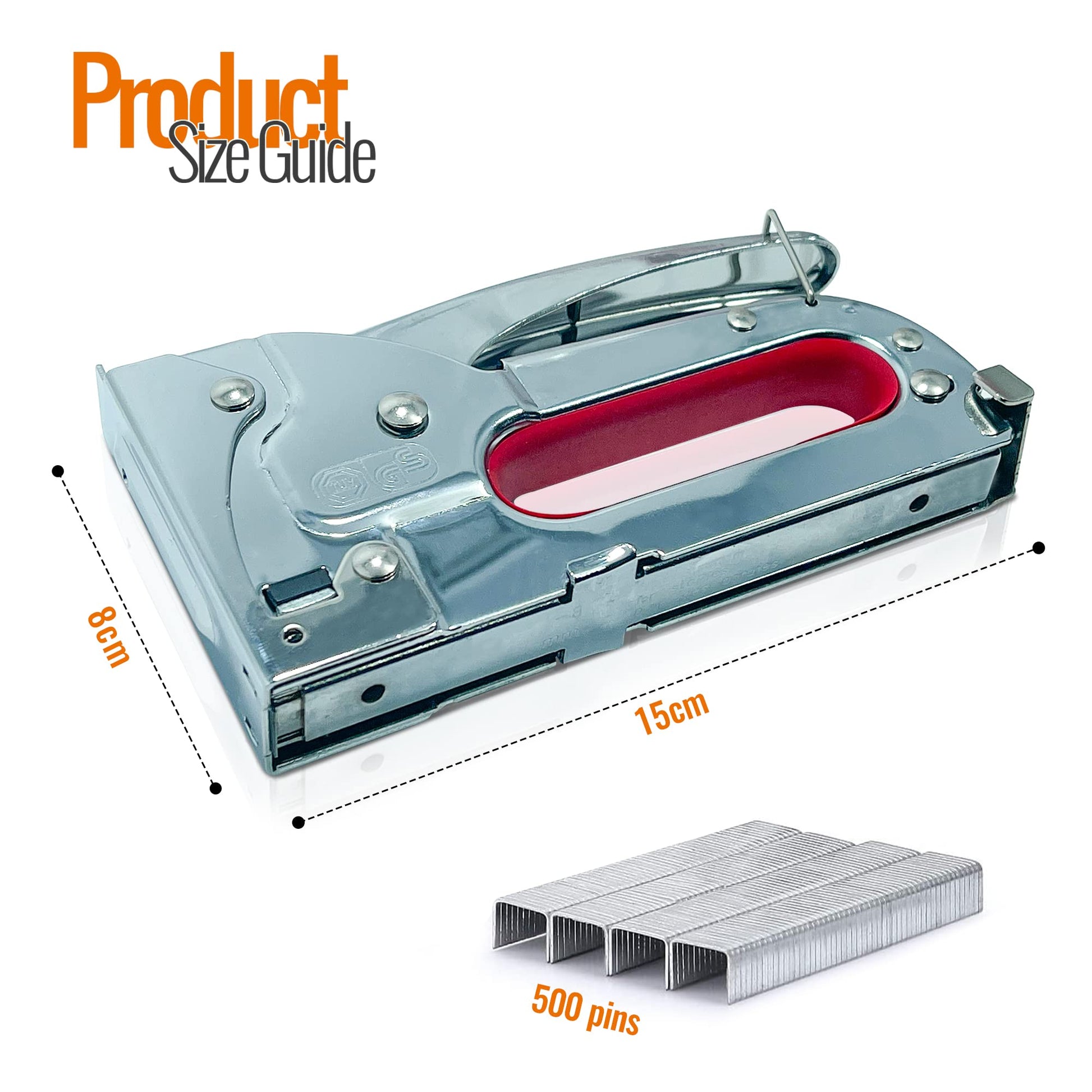 - This upholstery stapler gun comes complete with 500 staples which has 2 types of heavy duty staples. 250 X 6.35mm staples, 250X7.95mm staples.