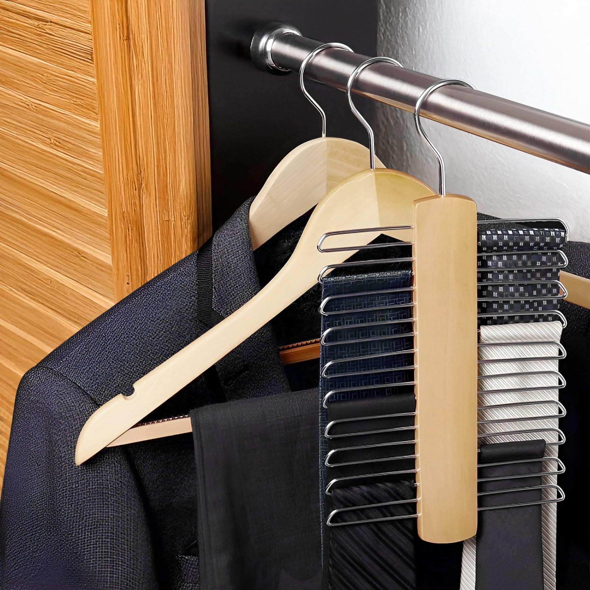 Wooden Tie Hangers as Wardrobe Organiser - 20 Chrome Bars