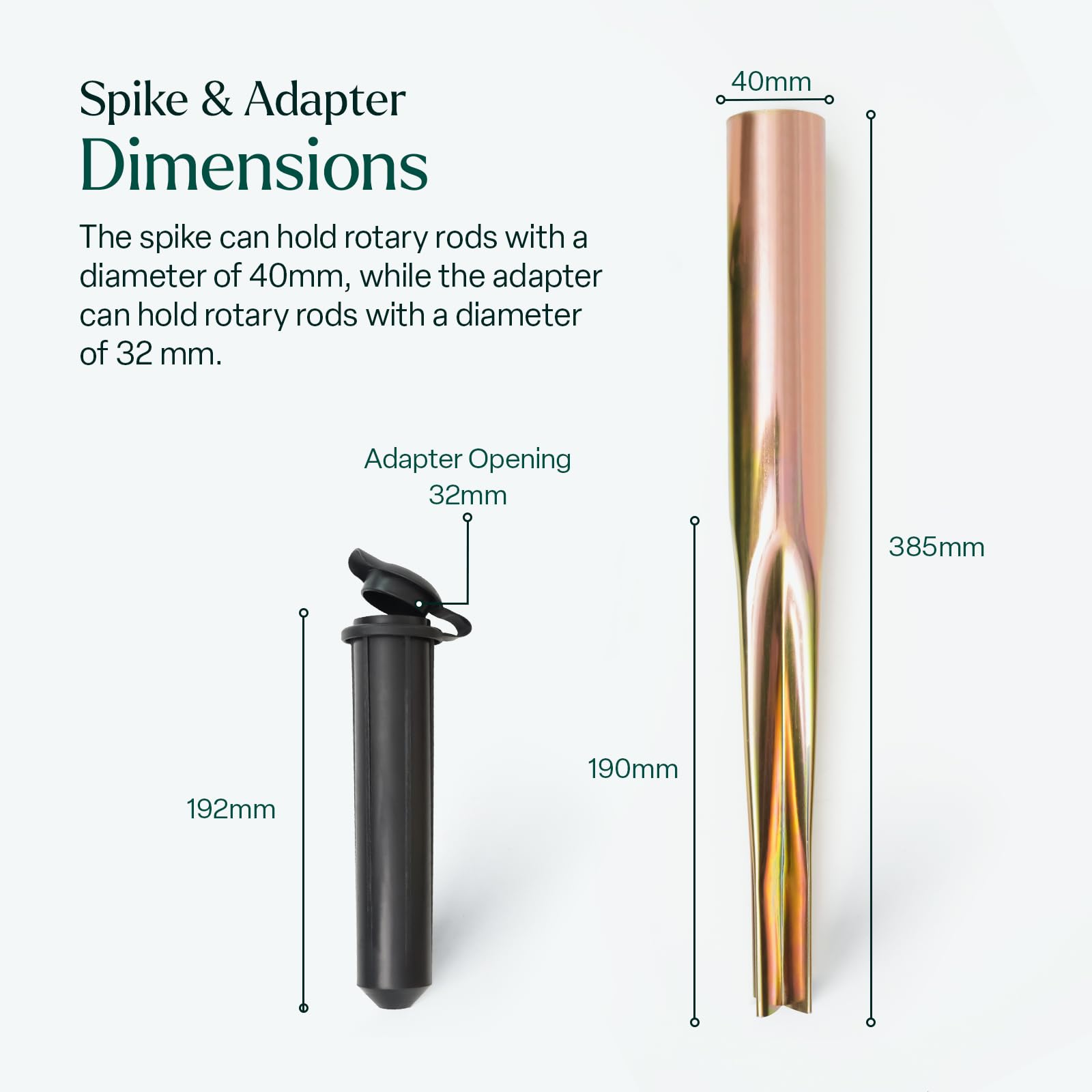 - Package: Our package contains 1 galvanized ground spike of length 38.5cm & 40mm diameter and 1 plastic adapter of 19cm in length & 32mm in diameter; When not in use, place a sheet on top of the cap to protect it from damage