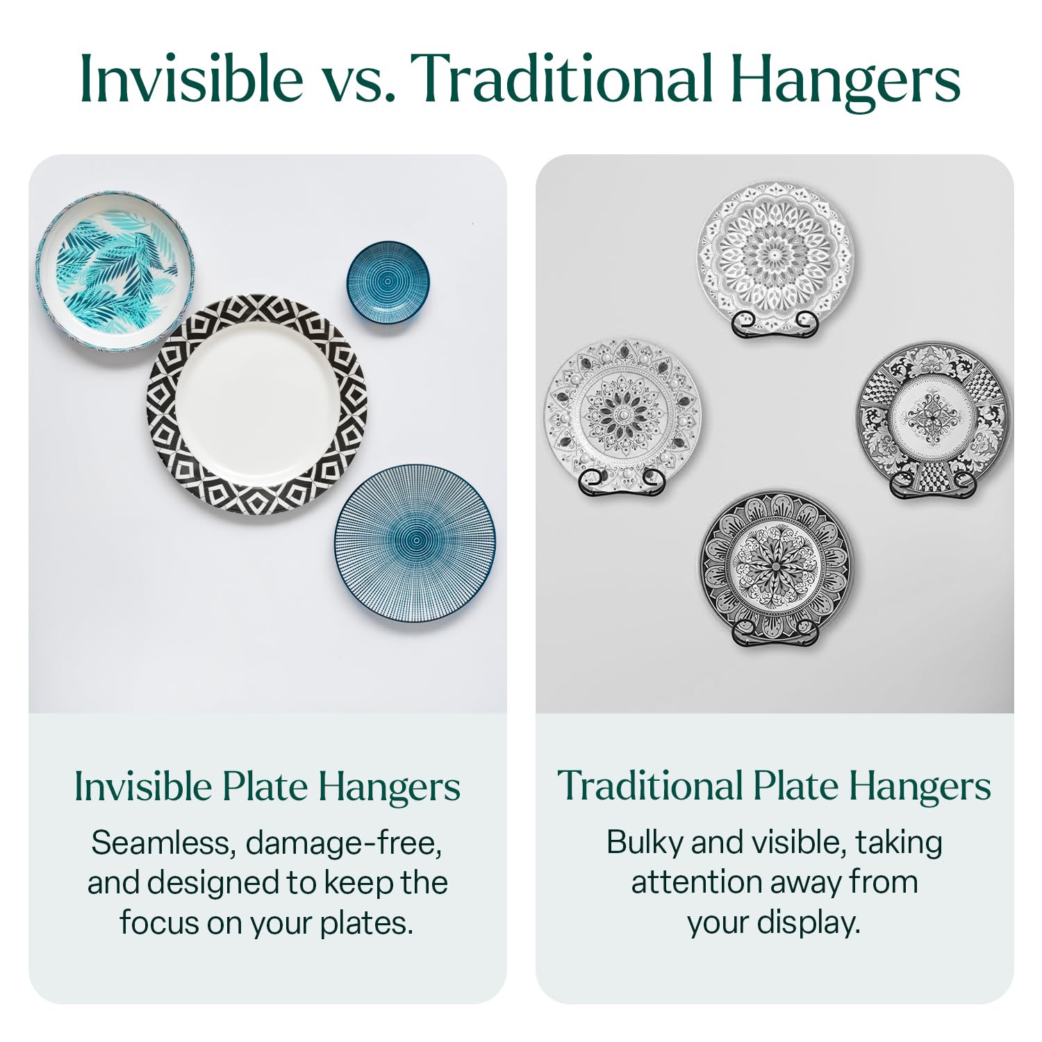 - Picture Hanging Hooks: Hide hooks, clips, wires invisible Adhesive Disk allows the plates to hang flat against the wall while eliminating ugly hooks, clips and wires